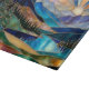 Bring peaceful nature into your kitchen with this beautiful stained glass style mountain lake sunrise cutting board. Featuring layered mountains, glowing sunrise rays, and a calm reflective lake, this design creates a serene and elegant atmosphere.