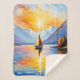 Sunrise over a lake and snow capped mountains sherpa blanket