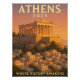 Travel poster design titled "Athens 2025 – Where History Awakens", depicting the Acropolis and Parthenon at sunrise.