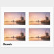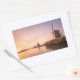 Sunrise over frozen river with windmills and reeds rectangular sticker