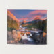 This photo features a colourful sunrise over the rapids of Swiftcurrent Creek in Glacier National Park, Montana.