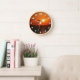 A lovely clock face with a photo of early morning sunrise over the sea in Cornwall. The clock has easy to read white numbers.