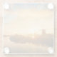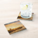 Glass photo coaster with a vibrant sunrise over a row of windmills and reflection in the water of the river on a beautiful morning in a countryside landscape in Kinderdijk in the Netherlands.