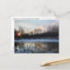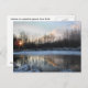 This postcard captures a moment out of time. It was a very cold early morning in upstate New York. The pond was partially frozen. Snow was clinging to the weeds and brush. The sky was a lovely palette of blue, pink, gold and white. The water reflected all this beauty in a perfect mirror image. And the sun rose blazing through the trees to illuminate the magic!