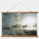 The polyester fabric displayed many wrinkles and several sharp creases throughout. At the bottom of the tapestry, I noticed a bulge in the fabric because it was not pulled tight enough before being connected to the wooden boards. It took me over an hour to spay water on the tapestry before putting it on an ironing board where I used a warm iron over a polyester cloth to remove the wrinkles and creases in the material. I was able to get out the wrinkles and creases that made that tapestry look as beautiful as its picture.
