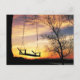 Silhouette of an old broken tree swing at sunrise photo postcard