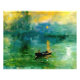 " Sunrise," depicts a serene harbour scene at dawn, where the sun rises above the horizon, casting a soft glow over the water and boats. It's an exemplary example of Impressionist art, with its emphasis on capturing the fleeting effects of light and atmosphere. The painting is prominent for its loose brushwork and vibrant colour palette, conveying a sense of tranquillity and beauty in nature's daily spectacle.