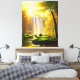 Sunrise, Waterfall, Trees, River. Beautiful Peaceful Nature Landscape Canvas Print.