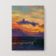 An art design of a beautiful sunset also showing rocks, beach and a man fishing.