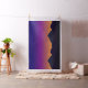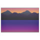 This fabric is printed with an endless scene of the sun setting behind mountains. The landscape is a tile that joins seamlessly left to right. The sun is low on the horizon so there is only a little bit of yellow left in the sky before it shades into purple then dark blue. The hills are dark and silhouetted against the sky.