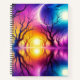 This notebook has an artsy sunset scene on it.