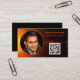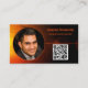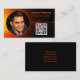 This professional card features a black and orange sunset look background with some text and QR Code placeholder on the front and other details over a black background in the back. Personalise the text fields, remove text or customise it to select a font style, size, and colour you prefer. Replace the photo and QR code with yours. A square photo works best. Use the QR code link to to send potential customers to reviews, photos or your website.