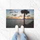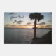 The tranquil scene of a sun setting across the calm ocean paired with soft swaying palm trees creates an inviting atmosphere, perfect for transforming any space into a peaceful retreat where you can unwind and relax.