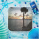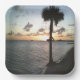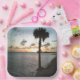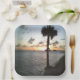 The tranquil scene of a sun setting across the calm ocean paired with soft swaying palm trees creates an inviting atmosphere, perfect for transforming any space into a peaceful retreat where you can unwind and relax.