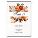 Sunset Autumn Floral Wedding Table Number
