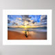 Poster shown with a white border and a photo print of a beautiful sunset beach scene. Customise this item or buy as is. Stock Image