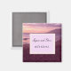 A beautiful pink and mauve sunset taken on the beach in Hawaii. Gentle waves and soft sand accent it. Customise with names and wedding date as desired.