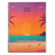 Sunset beach landscape scene notebook with palm trees and the sun.