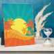 With a design of a retro tropical beach at sunset with palm trees. This surf design is in colors of red, orange and yellow and brings to mind a hot tropical beach resort in the Summer time. For lovers of sun, surf and sand and tropical sunsets..