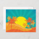 With a design of a retro tropical beach at sunset with palm trees. This surf design is in colours of red, orange and yellow and brings to mind a hot tropical beach resort in the Summer time. For lovers of sun, surf and sand and tropical sunsets..