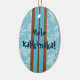 Located on Oahu's North Shore in Hawaii, Sunset Beach is known for its history with famous surfers of the fifties and sixties. These surfers and shapers inspired us to design this ornament. We combined koa wood stripes and printed panels of hibiscus flowers. For Christmas, our greeting is "Mele Kalikimaka", but these ornaments make great gifts year round, customise them with your own message! These designs comes several colorways.