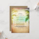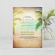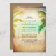 Rustic and vintage beach wedding invitation with sunset at the beach, teal sea and palm trees. Romantic fully customisable beach wedding invitation suitable for destination - tropical weddings.