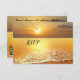 Romantic RSVP card featuring a painting of the beach at sunset in warm yellow orange colours. On the back is also an easy to customise QR code template added. The rectangle backgrounds can be customised or deleted in the advanced editor.