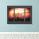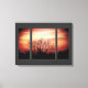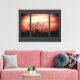 A single wrapped canvas with a triptych photo of a dramatic sunset and the silhouette of a river birch tree in the foreground. Dark vignetting frames the view. Presented on a dark charcoal grey background which you can change to a colour of your choice by clicking Customise it>Edit>Background and choosing from the colour chart. Photo © Little Wing Photography & Design
