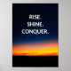 Rise. Shine. Conquer. Inspirational life Quotes or motivational business sayings with a night sky photography of the milky way and stars in space are perfect leaders into success, productivity and discipline if you have passion and the right mindset.