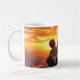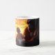 Heartfelt gorilla and baby illustration on mug, radiant sunset background, symbolising love, protection, and hope — ideal for inspiring mornings.