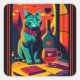 Sunset Cat Books And Wine Square Sticker
