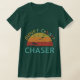 his eye-catching t-shirt features the words "Sunset Chaser" in a vibrant multicolor design. (Describe the specific style of the text, like "bold and dripping" or "playful and handwritten"). The shirt itself is a neutral colour (mention the specific colour) to let the text truly pop. Perfect for anyone who loves chasing those unforgettable sunsets!