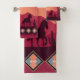 Sunset Desert Wild Horses Running Bathroom Towel Set. Southwest theme work desk accessories that you can customise. Two horses running in a desert landscape with mountain background. Not a cowboy in sight. Peaceful landscape with vibrant sunset colours. Great gift idea for those that love southwestern themed home decor, and the ancient history of the planet. Customise the images, and the styles of your beautiful wild horses breeds are free desk theme.