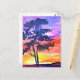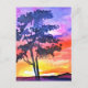 Beautiful colourful landscape sunset dreaming painting by artist Sacha Grossel of a red yellow and purple sunset landscape in the outback with a tree shadow in the foreground. Colourful original art in watercolor style.