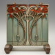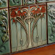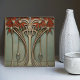 Infuse your home with the lush, romantic allure of the Art Nouveau era through this exquisitely designed ceramic tile. A quartet of blooms in radiant shades of sunset orange and terracotta unfurls elegantly against a backdrop of soft sage and eucalyptus green. The fluidity of their stems, highlighted by burnished copper and golden sand outlines, embodies the movement's signature whiplash curves and natural forms. Though the tile is printed and offers a smooth surface, the rich palette and dynamic design convey the depth and texture of a handcrafted piece. This tile is a perfect statement of timeless beauty for any room seeking a touch of artistry.