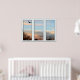 The artwork creates the illusion of having a window in your wall. The illusion makes you feel as though you're looking out at a realistic view of a bird flying at sunset.