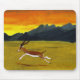 Wild animal art mouse mat of a gazelle leaping across the desert at sunset. A print of my original mixed media painting. The original is acrylic on canvas overlaid with a gazelle painted in glass paint on acetate. Inspired by an alphabet challenge! See my website for more details www.animalglassdesigns.co.uk ©Annabel Potter