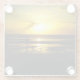 This glass coaster displays photography of Bude beach in Cornwall. Taken at sunset, the light glows on the horizon, reflecting beautifully upon the rippling waves.