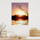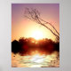 sunrealism series : sun setting on the horizon silhouette of trees giving out a energy life glow reflecting on water,..
