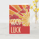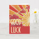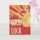 A gold and orange sun sets and the wind blows red and pink clouds across the sky. Greetings card with a gold, orange, red, pink and white customisable design for you to personalise with your own text, images and ideas. An original coloured pencil and metallic ink drawing by Jess Perry.