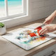 Add a vibrant touch of tropical serenity to your kitchen with this stylish glass cutting board, showcasing the captivating "Sunset Grove" watercolor design. Palm trees with rich, warm hues of orange, brown, and green stand tall, their fronds rendered with fluid artistry and subtle splatters for a dynamic feel. Perfect for meal prep or as a stylish serving platter.