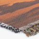 A quality printed throw has its advantages. This is a much finer weave throw than its loopier cousins, and though lighter, it is worth the investment for custom room accessorizing. The back is much prettier than the typical brown, and the fringe on the long sides very vivid, the selvage nicely done. Before photographing, I washed the throw in cold water, delicate, with a thicker woven throw the same size. On tumble dry low, this throw was dry in half the time as the other. This is a very practical quality if you use throws for furniture covers or to wrap up in frequently. The sleekness of the fabric makes it a great layer for accenting or protecting without the feeling of sitting on too much stuff. Perfect for napping or when you feel a light chill coming on. The color printing is beautiful and on this fabric, matched the design and color of my Photoshop image. This is an advantage for blending room fabrics and colors. The fringe on the short sides prints the colors from the design image and therefore varies from the side fringe. I streaked a white fractal line through the plaid pattern to give the illusion of weaving. This printed as crisp as an illusory thread, and put some white in the short side fringe, showing another advantage of print vs loomed- for artistic purposes, line lines, detail, and color integrity can be planned and preserved. My loomed throws have color limitations and more of a needlepoint texture. Print throws reproduce an exact image. The throw felt a little stiff straight out of the package, but this went away in the first delicate wash. Of course I searched the wash water for ink or bleeding and there was none.