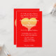Romantic wedding with shades of a sunset in golden yellow, pink on a red background on front and back. Personalise front with Bride and Groom's Names and wedding details. Click Customise to edit and remove hearts, or resize text Names. Backside has the wording, Together in Love in white text inside of larger heart. Original Artwork Design by TamiraZDesigns.