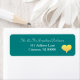 Romantic Wedding Address labels, or for any occasion, with shades of sunset golden yellow heart on a teal green background. Personalize with your name and address details in white typography. Original Artwork design by TamiraZDesigns.