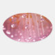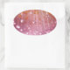 A 3D macro shot of a crystal chandelier.  Myriads of strands of sparkling glass beads catch the light to create a lovely bokeh in the background. The blurred glass drops are reflected clearly in the sharply focused crystal balls in the foreground.  The gold branches of the candelabra and soft pink atmosphere and lights give a sunset glow to the piece. Created in Vue.