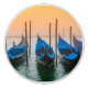 Peaceful setting next to the Doge's Palace in Venice, Italy, with four gondolas, all together pointing to a beautiful misty sunset.