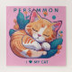 Anyone who loves cats will be enchanted with this cute cartoon kitty. Sleeping cat in a bed of foliage and flowers is colourful in bright pastels. The pink background colour may be changed to any colour desired within Zazzle's design tool. Add any text while within the tool, as well.
