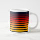 Multicolor striped design inspired by a sunset. Minimalist design in dark blue, and different shades of pink, red, orange, and yellow.