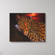 A beautiful leopard on a sunset night on this awesome wrapped canvas print.