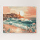 Sunset Lighthouse Ocean Beach Boho Floral Jigsaw Puzzle